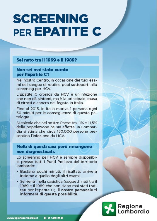 Campagna promossa da Regione Lombardia nell’attuazione del piano di eliminazione del virus dell’epatite C (link informativa privacy di Regione Lombardia).